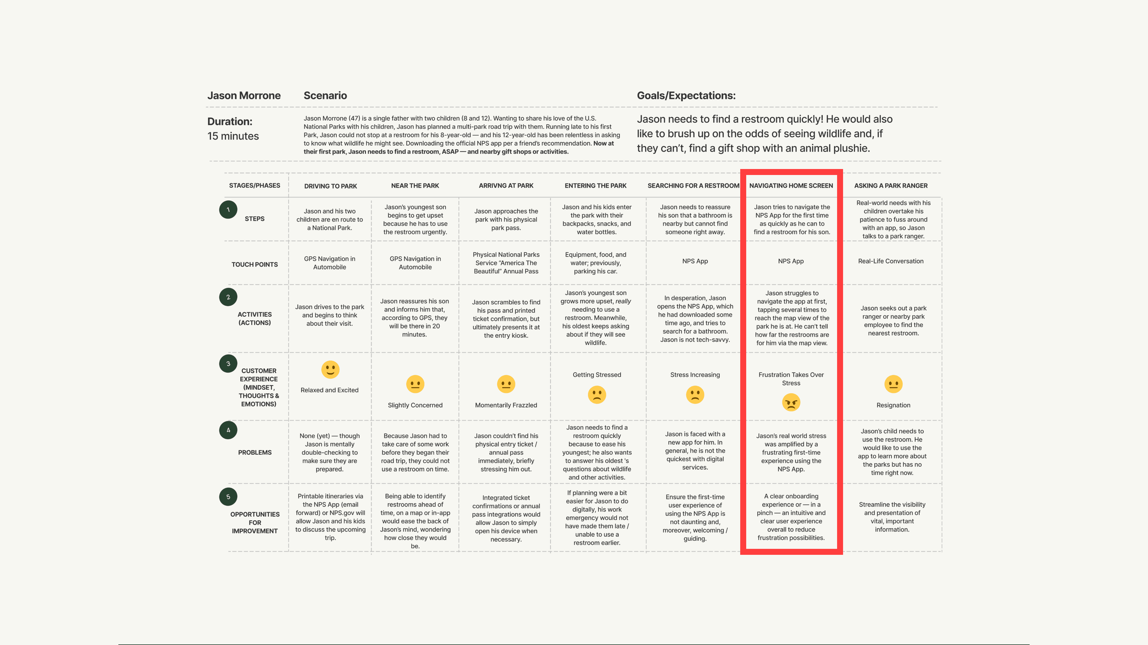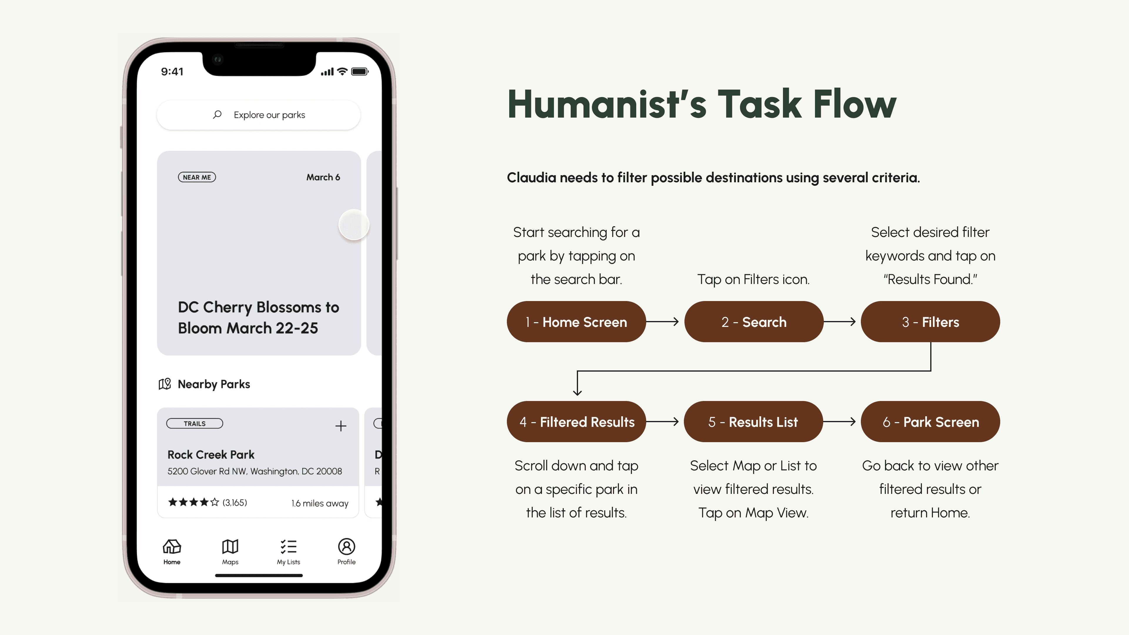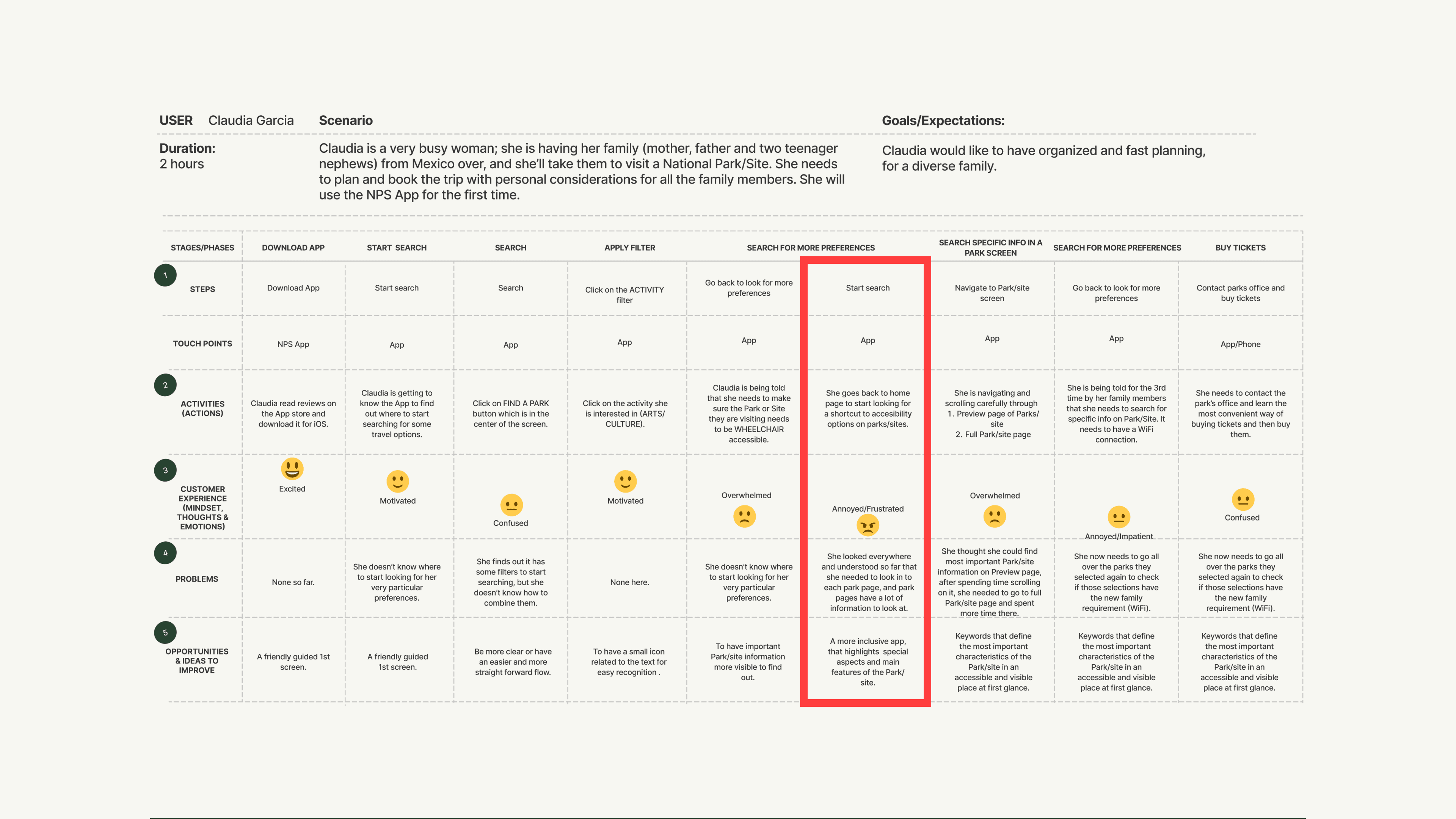 The goal in this multi-week team project was to conduct a heuristic evaluation of the existing NPS app user experience, assess the information architecture for a frictionless search experience, and unify disconnected sections of the app to better inform prospective visitors.